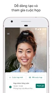 Kết nối, cộng tác và ăn mừng một cách an toàn ở mọi nơi. Khi sử dụng Google Meet, mọi người có thể tạo và tham gia cuộc họp video chất lượng cao dành cho nhóm có tối đa 250 người một cách an toàn.